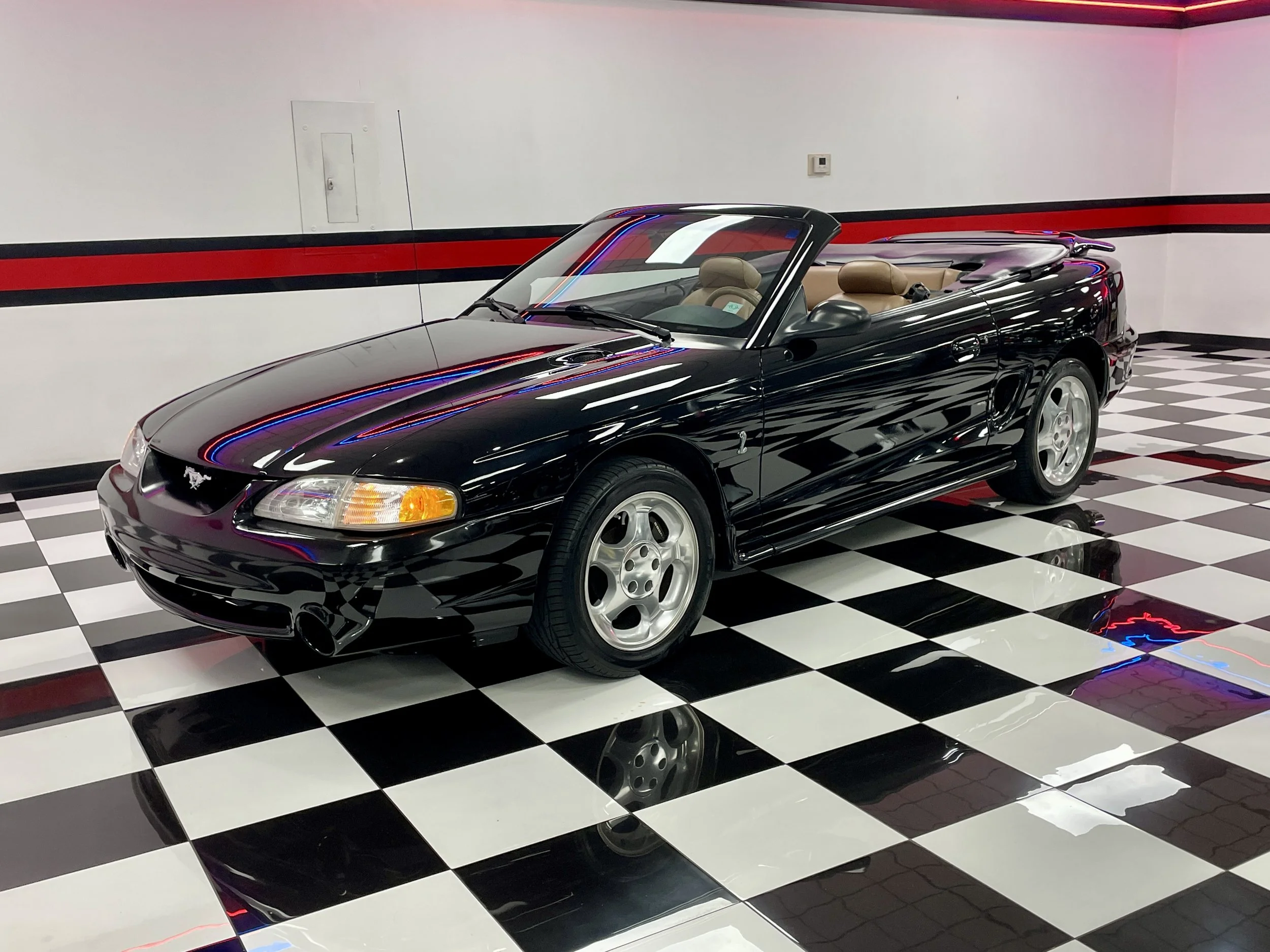 Rare, documented ’95 SVT Cobra showing 53,000 actual miles and equipped with its original window sticker, SVT certificate, and full service history. Finished in black with saddle leather and a black convertible top that has always been stored up and remains in excellent condition. Factory equipment includes power windows, keyless entry, CD player, rear window defrost, cruise control, a power convertible top, and power seats.